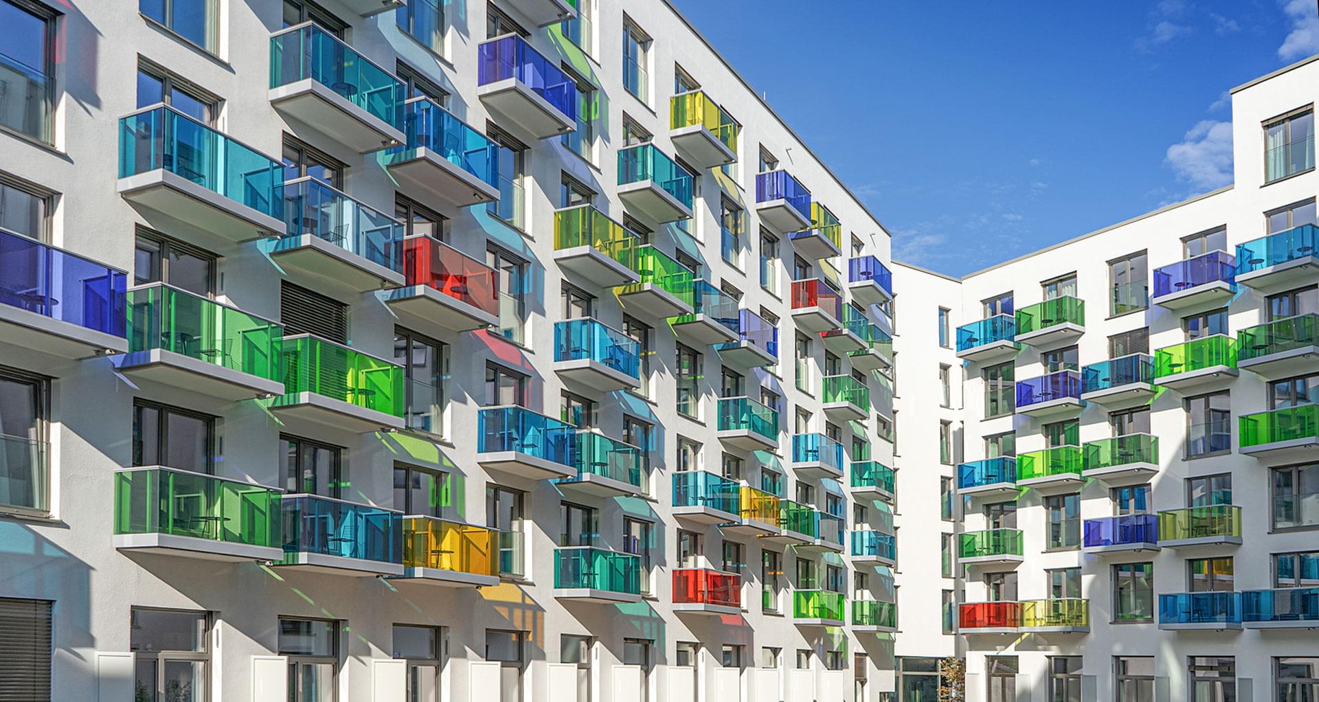 with up to two French balconies; in some cases with loggia and/or roof terrace
